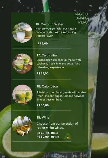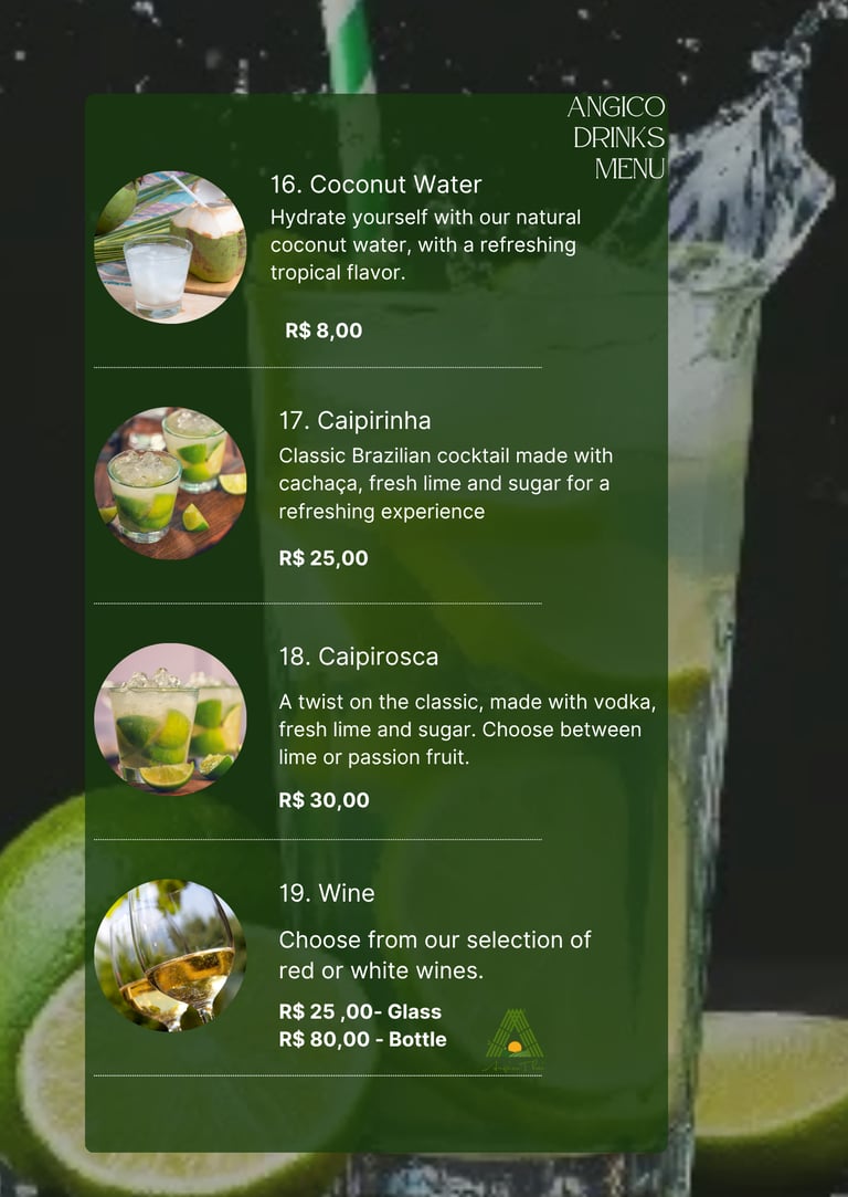 Aproveite nossas bebidas exóticas que complementam perfeitamente sua refeição.