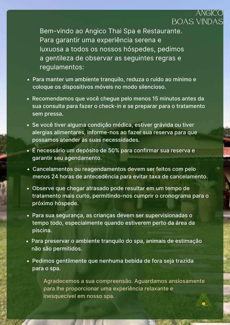 Reserve sua experiência única no Angico Thai Spa e Restaurante e desfrute da tranquilidade.